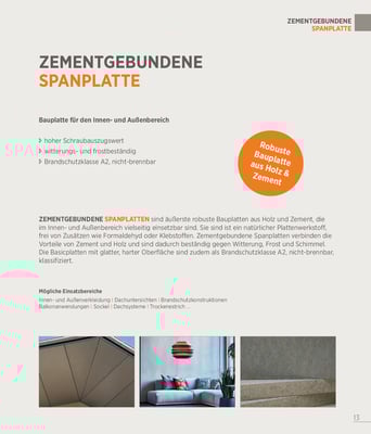 Die zementgebundene Spanplatte hat die Brandschutzklasse A2 (nicht brennbar).